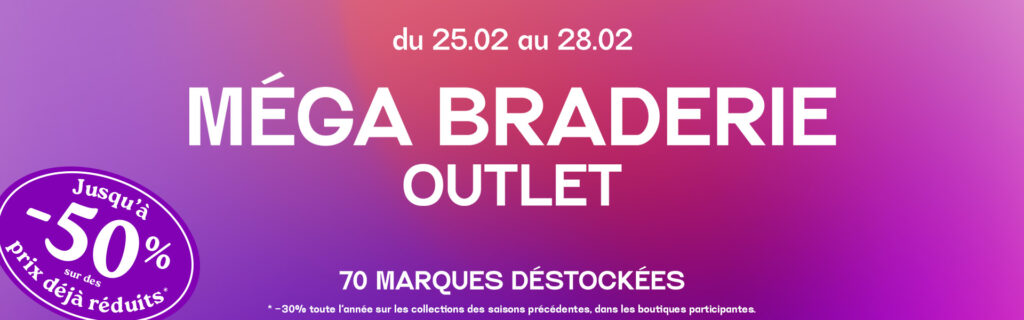*Sur une sélection d’articles de prêt-à-porter signalés en magasin, remise valable sur le prix outlet.